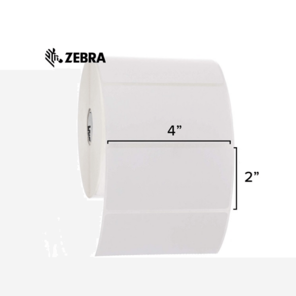 Zebra, Caja con 4 rollos de etiquetas de papel Z-Perform 2000T, 2,750 etiquetas por rollo, Transtherm, 4″ x 2″, Núcleo de 3″.